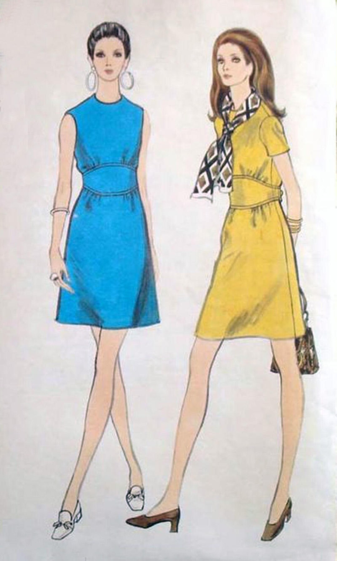 1960s Effortless Two Piece Dress And Scarf Vogue 5667 Bust 34 Vintage Sewing Pattern